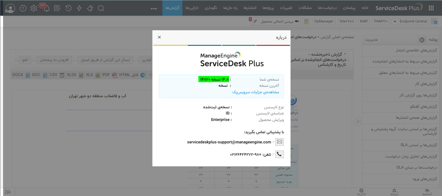 تاریخ شمسی به همراه نمایش ماهها در بخش گزارشهای نرمافزار ServiceDesk Plus با استفاده از فارسیساز تیوان نت